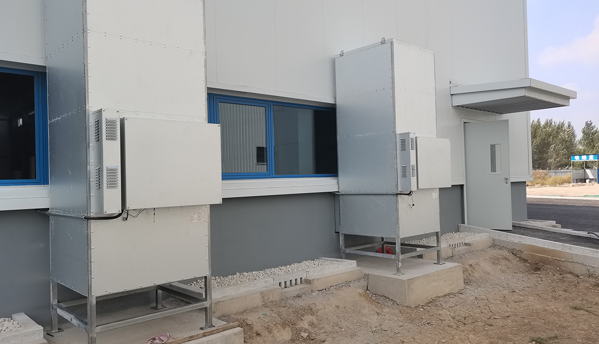 加熱裝置可安裝在室內或嵌入墻壁,采用側面安裝供風。采用燃氣盤管內燃氣直接燃燒加熱空氣,換熱效率高。
