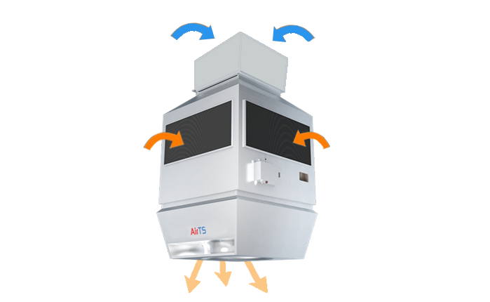 采用四面回風(fēng)結(jié)構(gòu),可貼頂安裝,安裝 所需空間更小