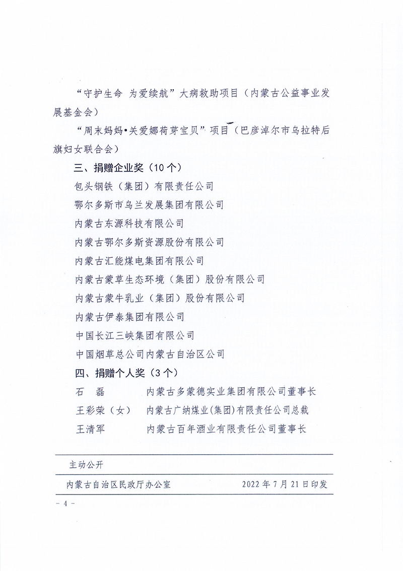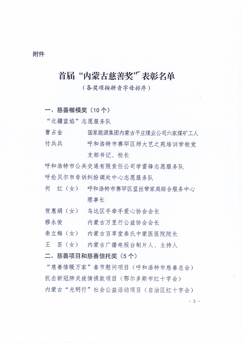 關于表彰首屆“內蒙古慈善獎”獲得者的決定