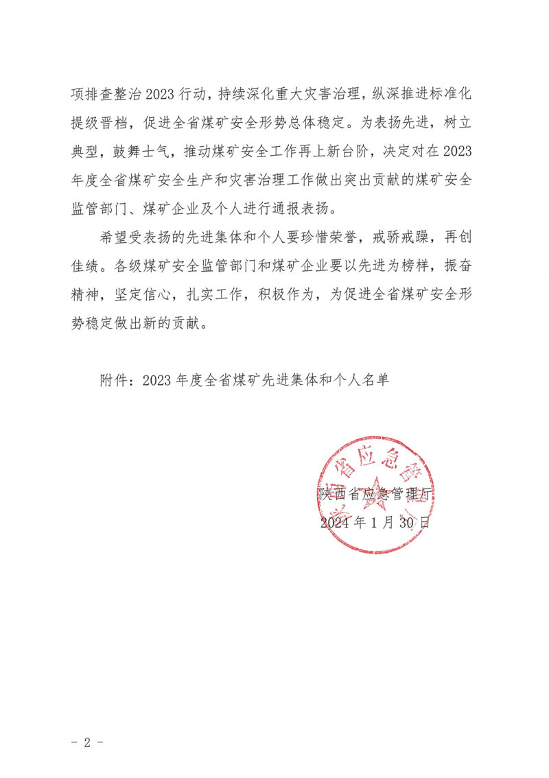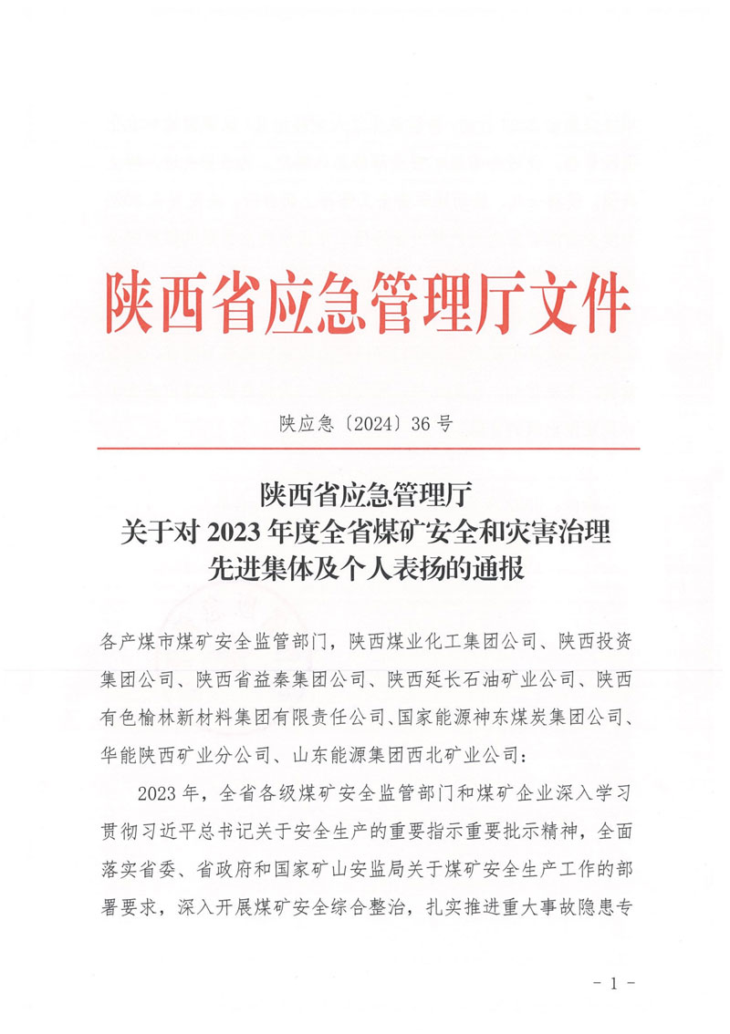 2月1日,陜西省應(yīng)急管理廳在西安國(guó)際會(huì)議中心組織召開(kāi)全省煤礦安全工作會(huì)議,對(duì)2023年全省煤礦安全先進(jìn)集體和個(gè)人通報(bào)表?yè)P(yáng),匯能集團(tuán)所屬錕源煤礦榮獲“陜西省煤礦企業(yè)安全先進(jìn)集體”稱號(hào),這是繼錕源煤礦通過(guò)國(guó)家一級(jí)安全生產(chǎn)標(biāo)準(zhǔn)化管理體系現(xiàn)場(chǎng)定級(jí)考核后,取得的又一項(xiàng)重大殊榮。